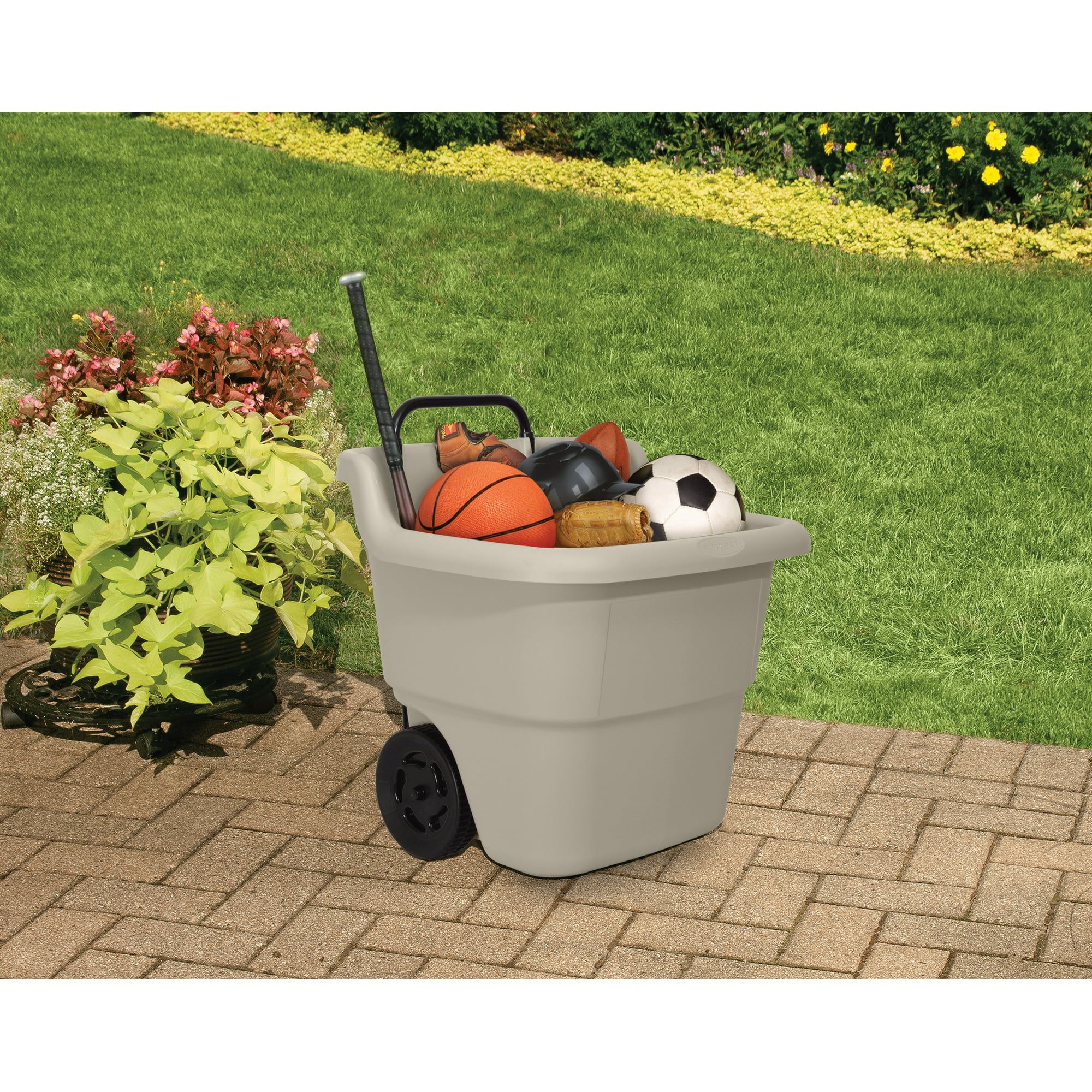 15 Gallon Resin Rolling Lawn and Utility Cart with Retractable Handle